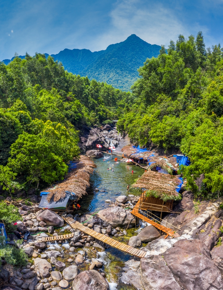 Một bãi tắm nằm trong hệ thống suối Tiên. Dòng nước ở đây xanh mát chảy từ trên cao xuống. Vì mới được khai thác nên suối Tiên trở thành điểm đến của nhiều người thích khám phá