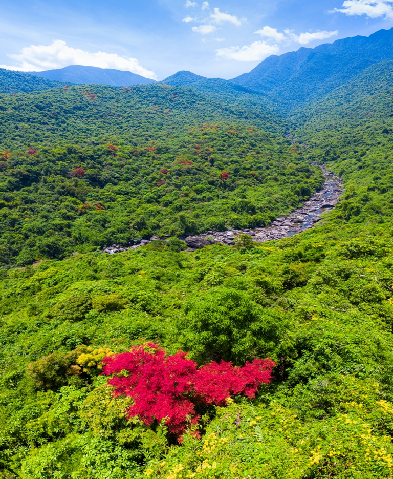 Thảm đỏ của một loại cây mọc giữa núi rừng cạnh khu suối Tiên. Hệ sinh thái quanh khu vực này cơ bản còn nguyên vẹn, được người dân đây bảo vệ nghiêm ngặt.
