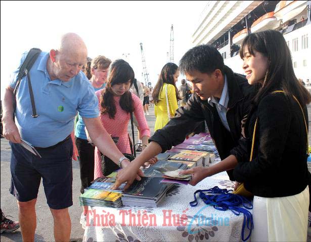 Tiếp thị du lịch tại Cảng Chân Mây. Ảnh: Hà Giao