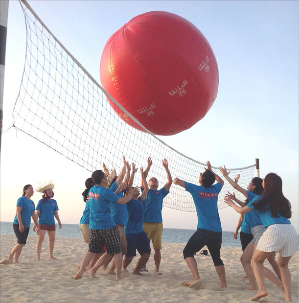 Tổ chức team building ở bãi biển Thuận An – một phần hoạt động của du lịch MICE. Ảnh: Huetourist