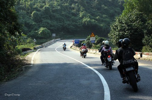 Cung đường Hải Vân chênh vênh, khúc khuỷu, có lúc uốn lượn theo triển núi, khi bất ngờ rẽ ngoặt, tạo nên những khúc cua hình zig zag mà bọn mình gọi là “những khúc cua huyền thoại”