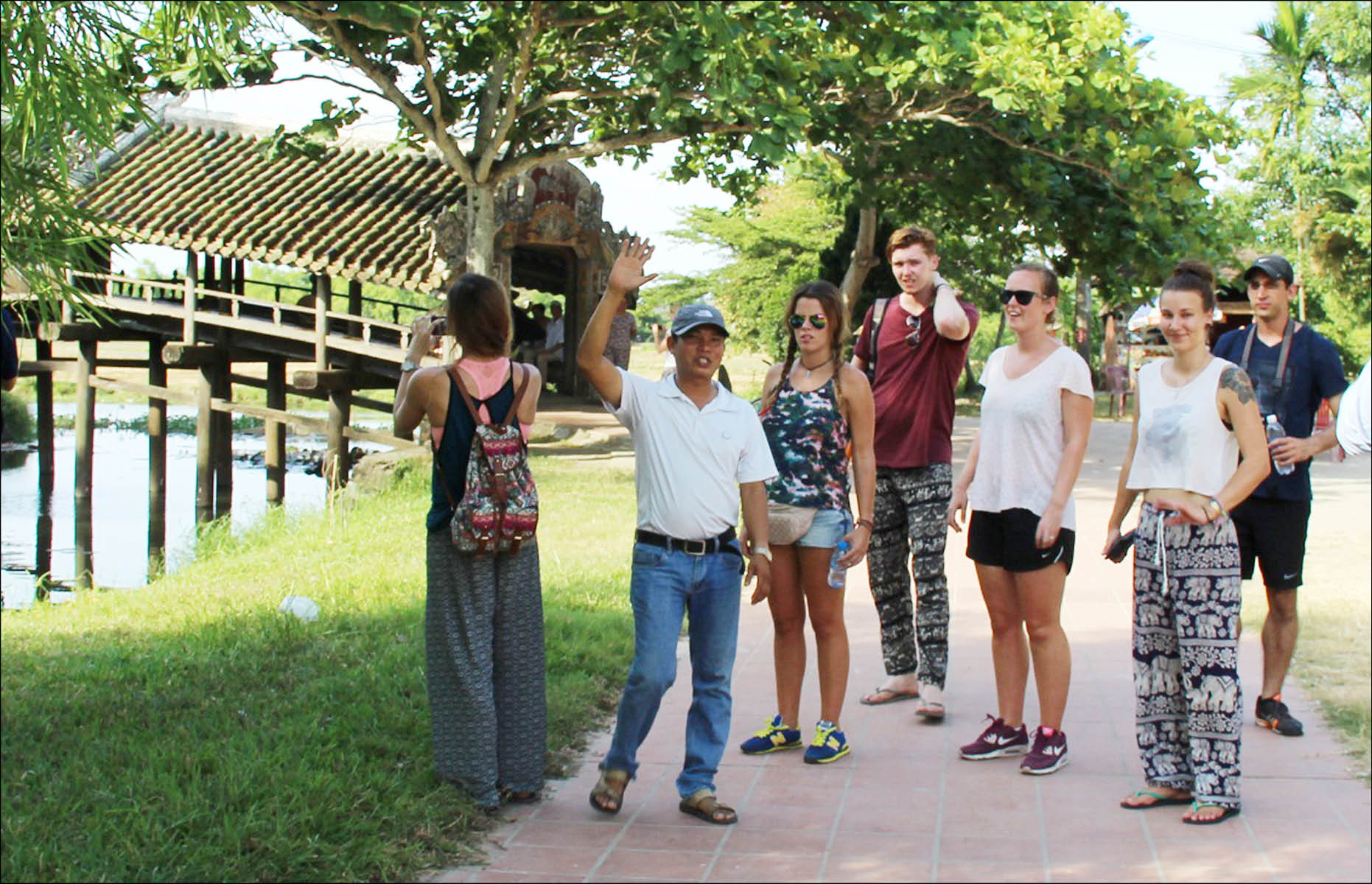 Khách du lịch đến thăm cầu ngói Thanh Toàn