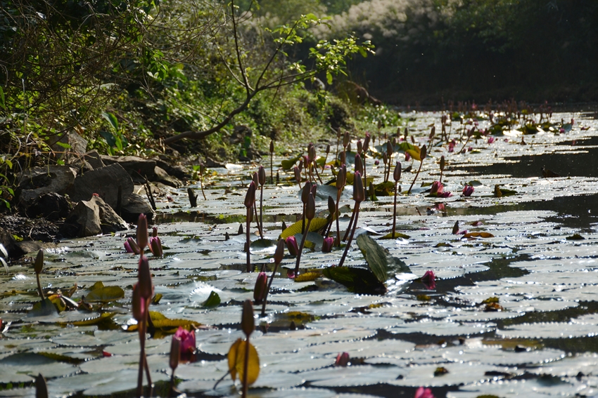 | Hoa súng được trồng men đôi bờ suối Ấu. |