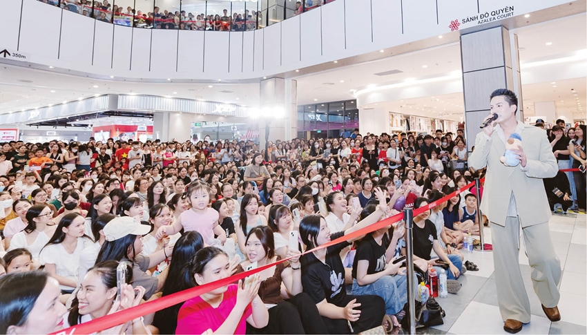 | Rất đông người dân, du khách đến Trung tâm thương mại AEON MALL Huế xem đêm nhạc do ca sĩ Anh Tú biểu diễn |