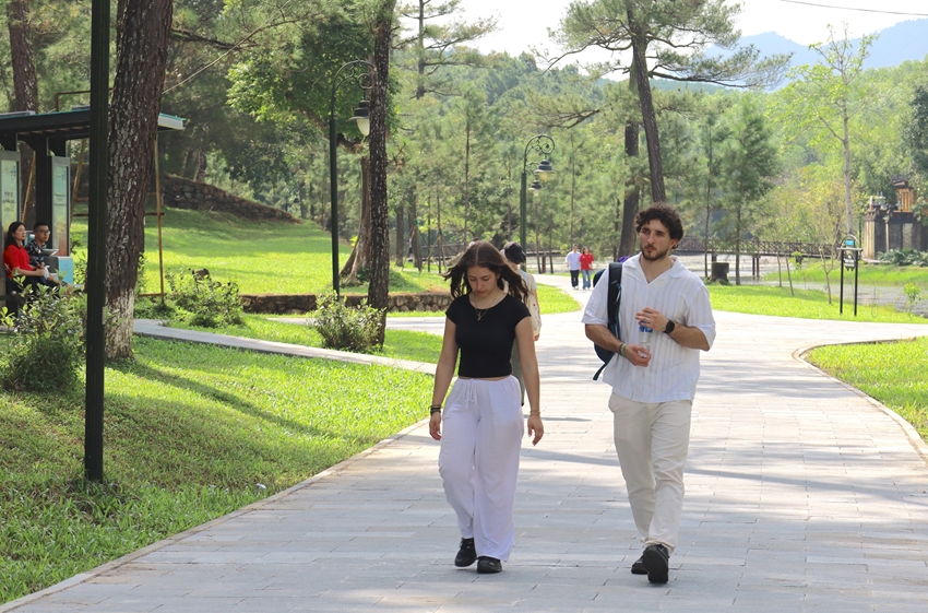 | Khách quốc tế đến tham quan ở lăng Vua Gia Long trong ngày 2/1/2026 |