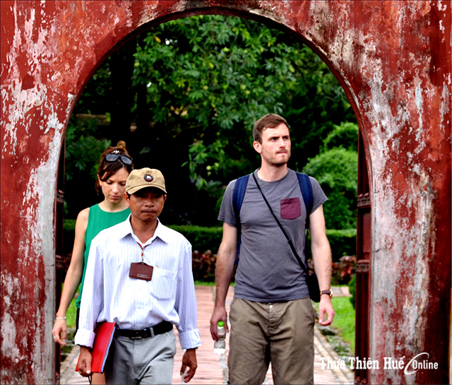 Khách nước ngoài tham quan di tích . Ảnh Đức Quang