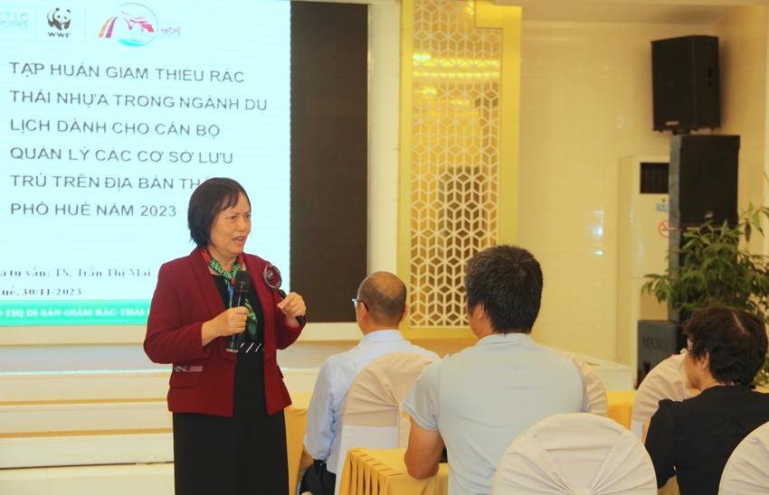 HNN.VN - Sáng 30/11, Sở Du lịch phối hợp với Dự án “Huế - Đô thị Giảm nhựa ở miền Trung Việt Nam” (thuộc Tổ chức Quốc tế về Bảo tồn Thiên nhiên Việt Nam) tổ chức tập huấn giảm thiểu rác thải nhựa trong ngành du lịch dành cho cán bộ quản lý các cơ sở lưu trú trên địa bàn TP. Huế năm 2023.