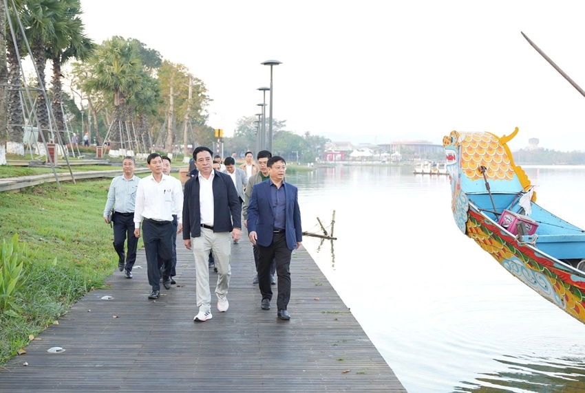 Đoàn đã khảo sát tuyến du lịch đường thủy nội địa xuất phát từ khu vực bến thuyền số 16 Lê Lợi, đến tuyến du lịch đường thủy sông Đông Ba - Bao Vinh, kết nối với khu phố cổ dọc các trục Bạch Đằng - Huỳnh Thúc Kháng - Bao Vinh. Đây được xác định là tuyến có ý nghĩa quan trọng trong chiến lược mở rộng không gian du lịch của thành phố, khai thác giá trị cảnh quan sông nước gắn với du lịch tâm linh, lịch sử và đời sống sinh hoạt của cư dân đô thị cổ.