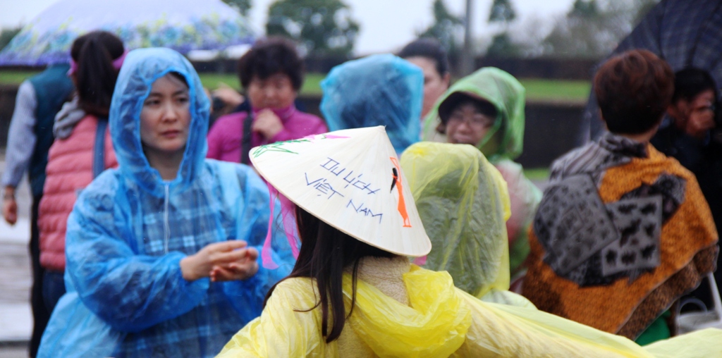 Một đoàn đông đảo du khách đến từ Hàn Quốc đến Huế du lịch vào đúng mùa mưa năm nay