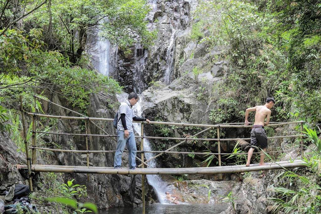 Cây cầu tre được người dân xây dựng để di chuyển đến hồ nước lớn nhất thác