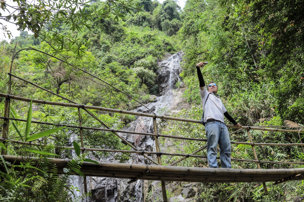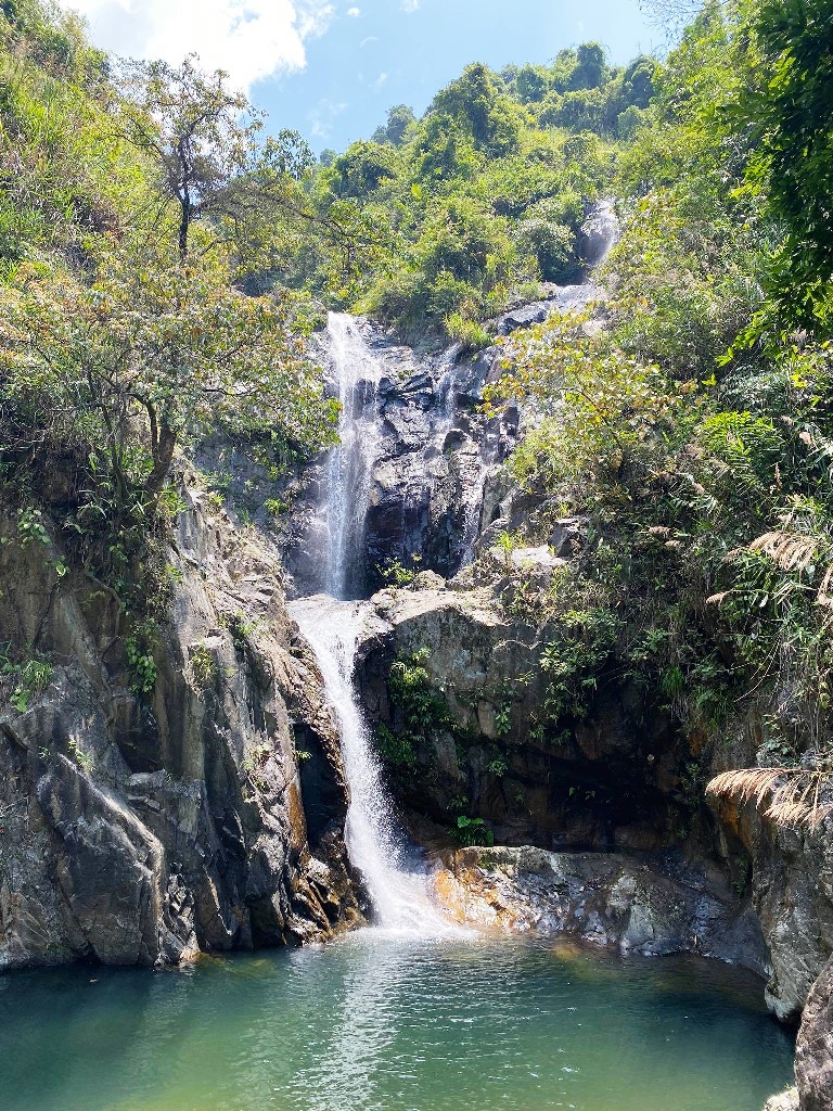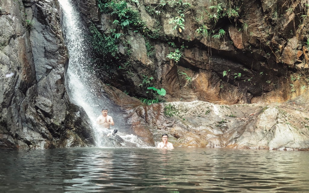 Dường như để bù đắp lại cho sự mạo hiểm của chúng tôi, thiên nhiên đã ban tặng một bức tranh tuyệt đẹp với những vách núi đá dựng đứng, dòng thác hùng vỹ đổ từ trên cao xuống tạo thành hồ nước trong xanh như một điểm nhấn giữa màu xanh của đại ngàn.