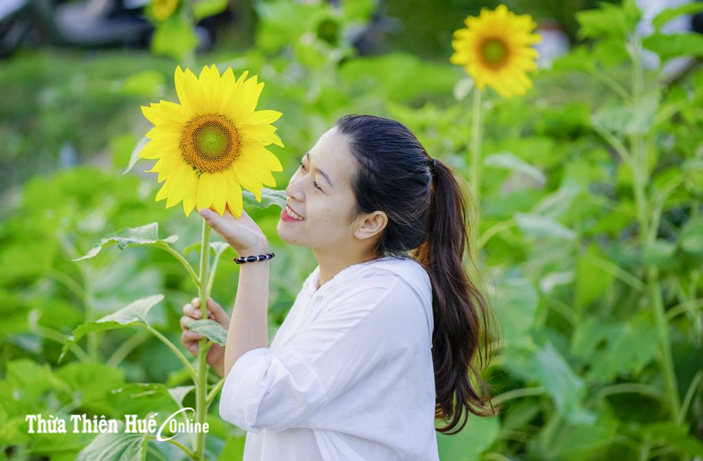 Đang mùa nắng nên hoa hướng dương nở rộ, thu hút nhiều bạn trẻ