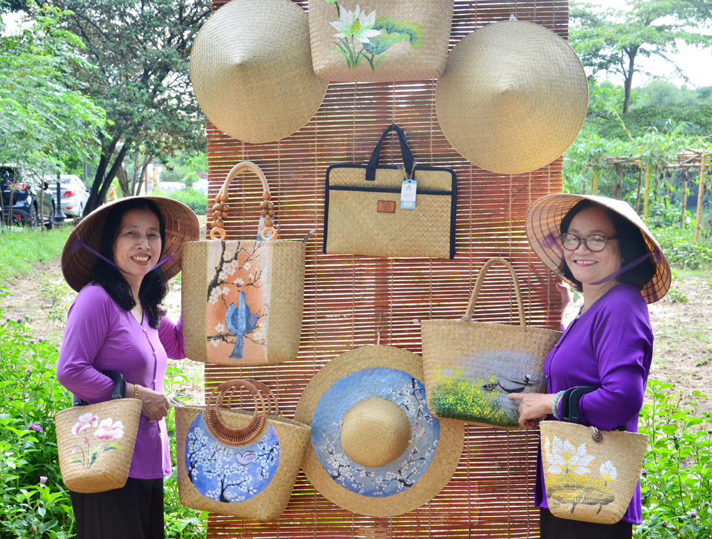 Những chiếc túi, mũ nón làm bằng đệm bàng thân thiện với môi trường là sản phẩm làng nghề độc đáo ở Phong Điền