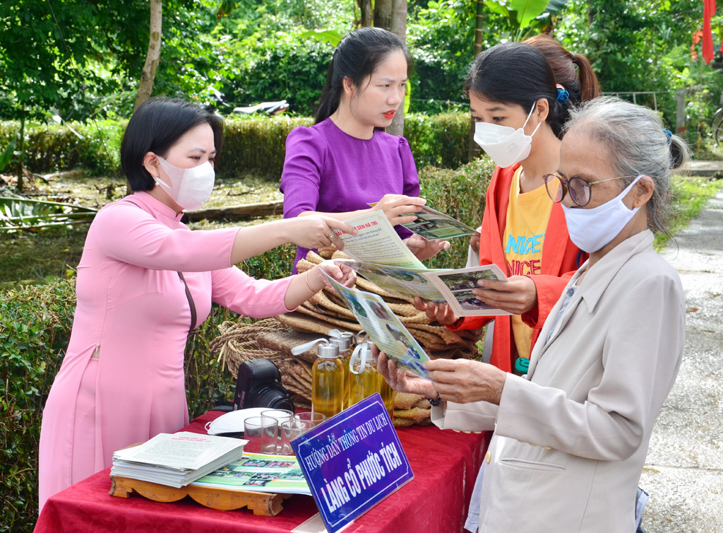 Du khách tìm hiểu thông tin về làng cổ Phước Tích trước khi tham quan, trải nghiệm phiên chợ