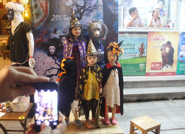 Nhiều em nhỏ thích thủ hóa trang Halloween ở trên phố đi bộ