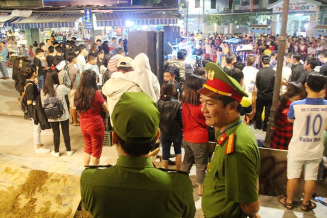 Lực lượng an ninh luôn túc trực, đảm bảo an toàn, trật tự cho du khách khi đến đây vui chơi