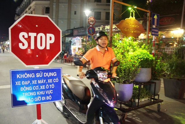 Hình ảnh khá quen thuộc ai cũng dễ bắt gặp đó là người dân sống trong khu phố đi rất bộ ý thức việc dắt xe máy ra khỏi phố đi bộ