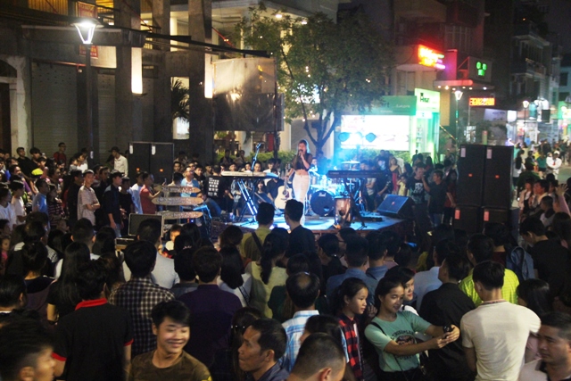 Hình ảnh những trẻ nhỏ thỏa thích vui đùa chạy nhảy ít thấy giữa đường phố thì nay vô cùng gần gũi ở không gian này. Ngoài ăn uống, mua sắm, điểm đến lúc nào cũng đông đúc, thu hút du khách chính ở các ngã tư – nơi giao nhau các tuyến đường, khi mà âm nhạc đường phố lên đèn. Vài cây ghita, dàn trống, cùng ít chiếc loa thùng… tạo nên một sân khấu mini ngay giữa lòng phố thị. “Thật là tuyệt vời. Đây là điểm đến mà mình trong chờ nhất trong tuần. Đơn giản thôi, bởi nó giúp cho mình được đắm chìm trong không giản thỏa mái, được hát hò”, Nguyễn Quỳnh Tiên (22 tuổi, TP. Huế) nói vội trong điệu nhạc sôi động.