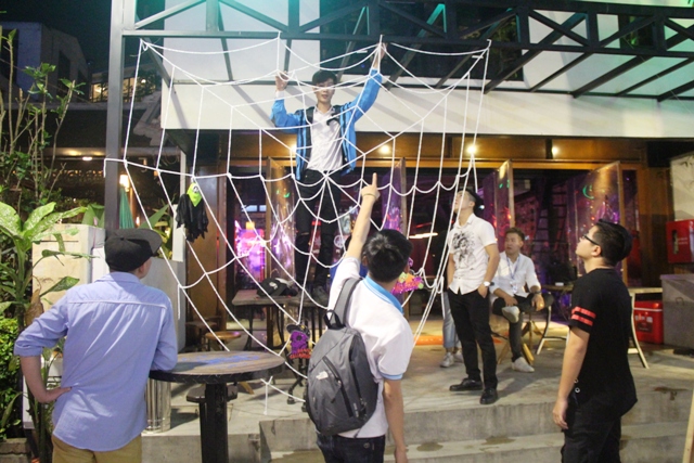 Một nhóm người trẻ thiết kế không gian chào đón Halloween