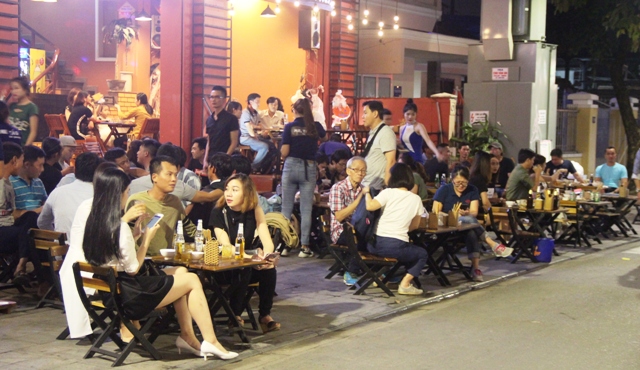 Một quán bar bên trong phố đi bộ thu hút du khách chủ yếu là người nước ngoài. Tất nhiên, bao giờ cũng nhộn nhịp