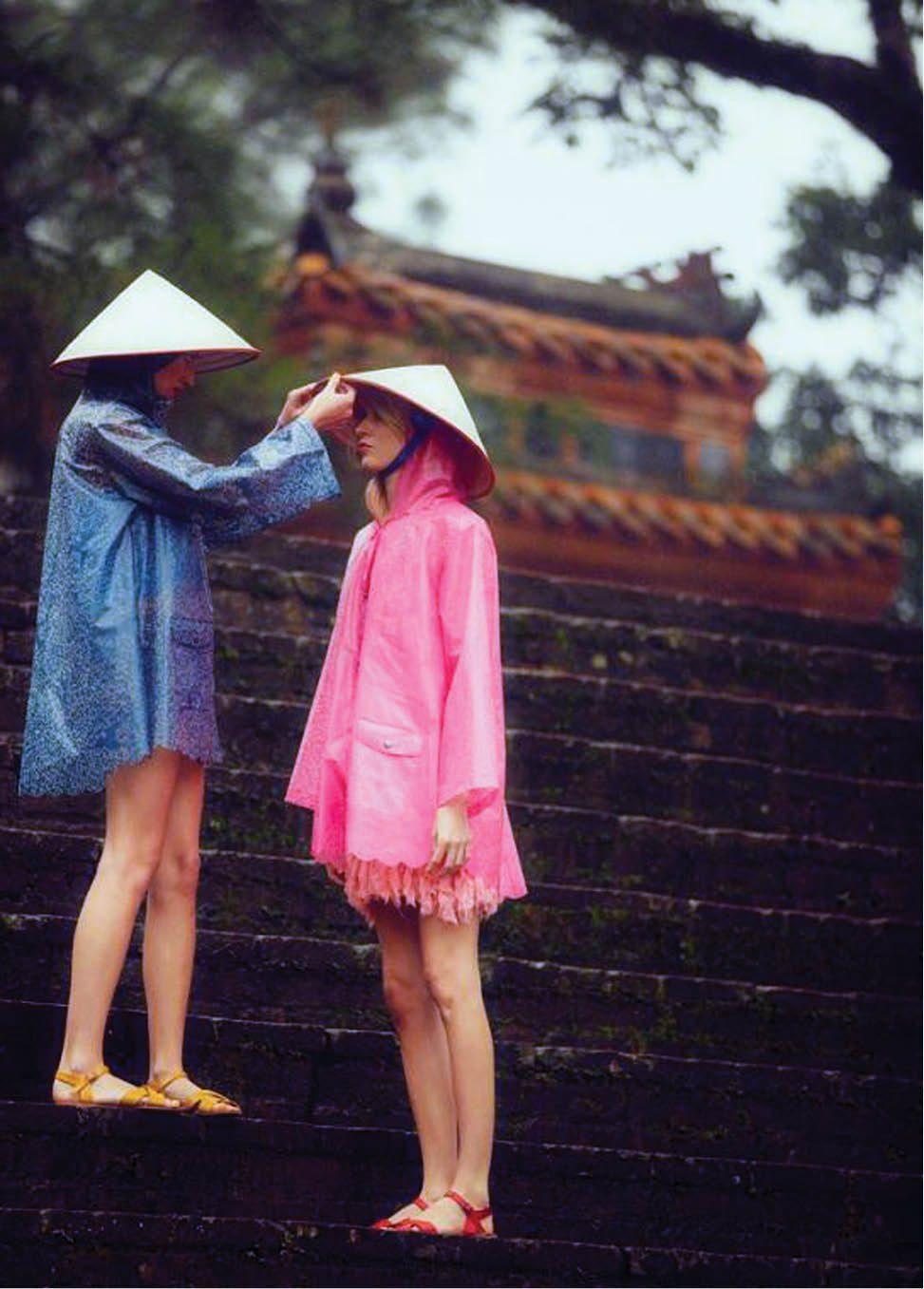 Ấn tượng bởi hình ảnh những chiếc áo mưa nhiều màu di chuyển khắp thành phố khiến du khách trẻ này tò mò, thích thú. Với Đức Anh, những chiếc áo mưa nhiều màu sắc không nơi nào có được của vùng đất Cố đô, là đặc sản riêng, cũng giống như mưa Huế vậy. Có lẽ những người làm du lịch ở Huế cố tình lựa chọn những chiếc áo mưa màu tím để cho du khách mặc và khám phá di sản. Những đoàn khách dài, bước qua những vách tường rêu phong, cổ kính, nhìn Huế thật lạ và hình ảnh đó khó có thể quên được.