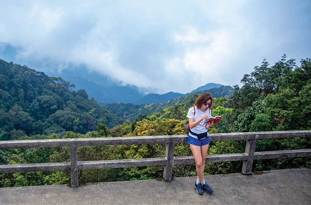 Nữ du khách mải mê đọc sách trên đỉnh Bạch Mã