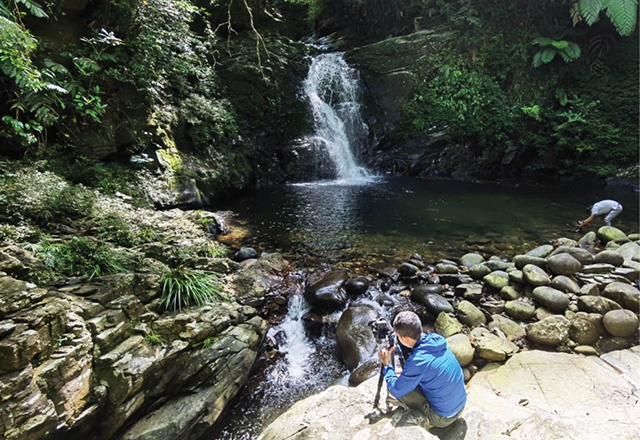 Anh Phúc sau khi cất máy ảnh vào ba lô cũng bắt đầu công việc dọn dẹp rác xung quanh khu vực đỉnh thác. Anh bảo “Ai sao thì không biết chứ mình phải gắng mang rác ra khỏi rừng. Thấy dưới biển có slogan “Không để lại gì ngoài những dấu chân” không? Giờ lên rừng cũng chỉ để lại ký ức và khoảnh khắc đẹp thôi”.