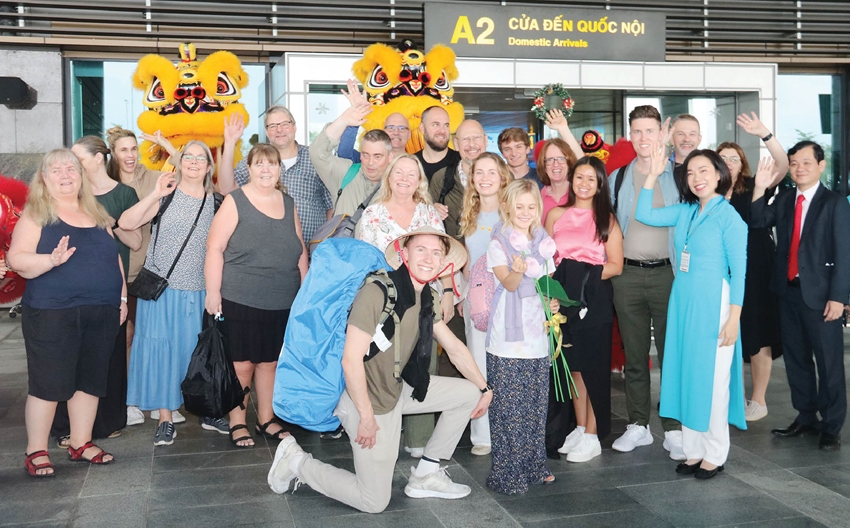 | Du khách nước ngoài đến sân bay quốc tế Phú Bài |