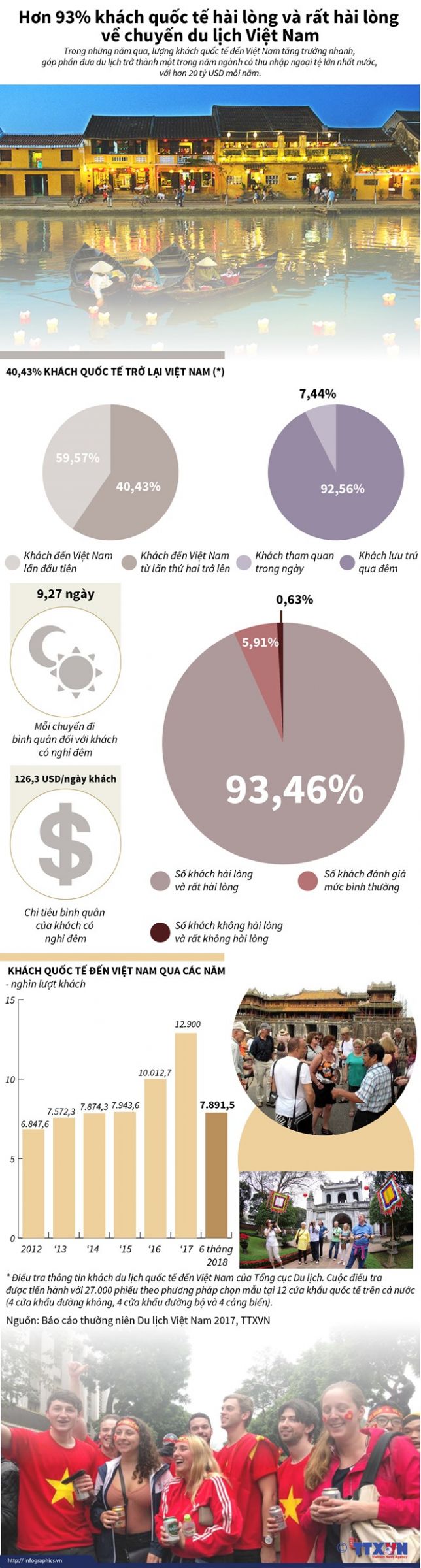 93% khách quốc tế hài lòng và rất hài lòng về chuyến du lịch Việt Nam