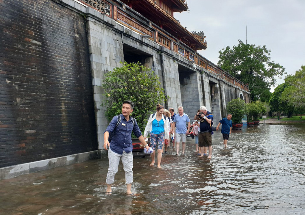 Ông Nguyễn Văn Phúc cho biết, trong ngày 15/10, có một đoàn khách quốc tịch Anh đến Huế và mong muốn tham quan Đại Nội trước khi rời đi. Sau khi nhận được thông tin, dựa vào trao đổi thông tin với lực lượng công an, Trung tâm Bảo tồn Du tích Cố đô Huế, ngành du lịch đã hướng dẫn và cử cán bộ trực tiếp đưa đoàn khách vào tham quan Đại Nội. Thời điểm khách vào tham quan, trong Đại Nội một số điểm còn bị ngập, nên du khách chỉ tham quan những khu vực an toàn.