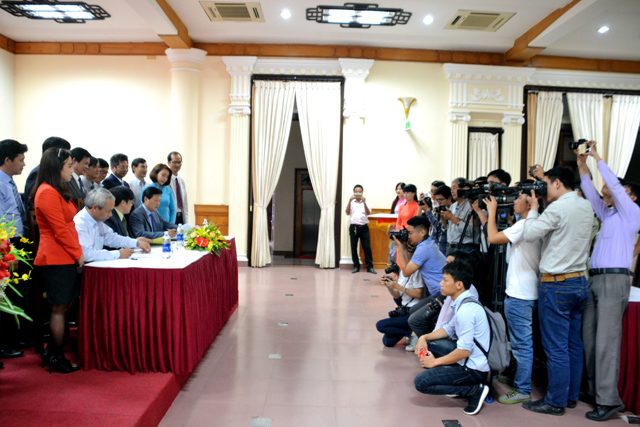 Phóng viên tác nghiệp đưa tin về lễ ký kết tài trợ tại Festival Huế 2018
