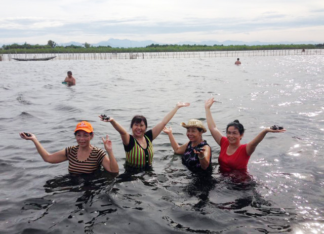 Du khách tham gia trải nghiệm bắt trìa tại điểm du lịch cộng đồng Ngư Mỹ Thạnh