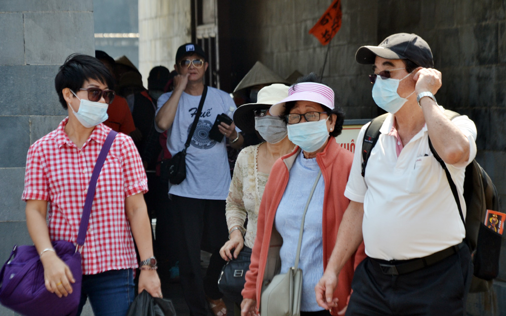 Du khách mang khẩu trang y tế khi tham quan di sản Huế