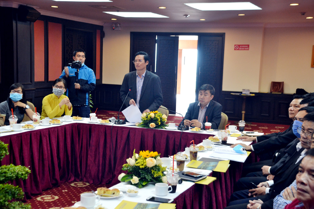 Ông Đinh Mạnh Thắng, Phó Chủ tịch Hiệp hội Du lịch Việt Nam, Chủ tịch Hiệp hội Du lịch tỉnh trao đổi tại buổi họp trực tuyến