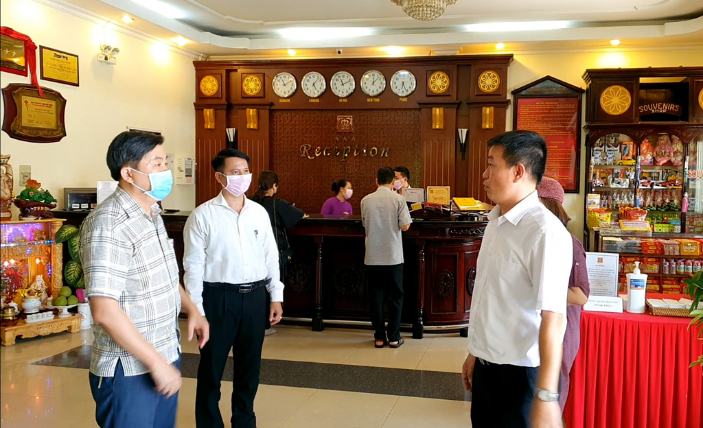 Lãnh đạo Sở Du lịch (ngoài cùng bên trái) thăm và nắm bắt tình hình khó khăn của doanh nghiệp và lao động