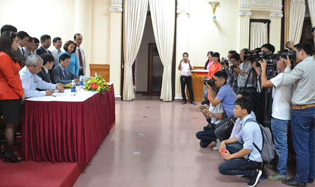 Phóng viên tác nghiệp tại sự kiện quảng bá du lịch. Ảnh: ĐỨC QUANG