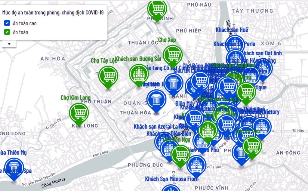 HNN.VN - Trước những diễn biến mới, phức tạp của dịch bệnh COVID-19, Sở Du lịch phối hợp với các đơn vị liên quan xây dựng công cụ bản đồ du lịch Huế an toàn (Hue Blue Map) nhằm thống kê các cơ sở lưu trú, dịch vụ, điểm tham quan... an toàn trong phòng chống dịch.