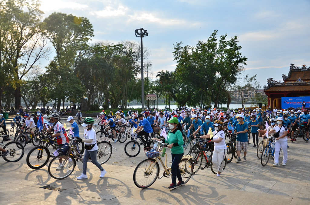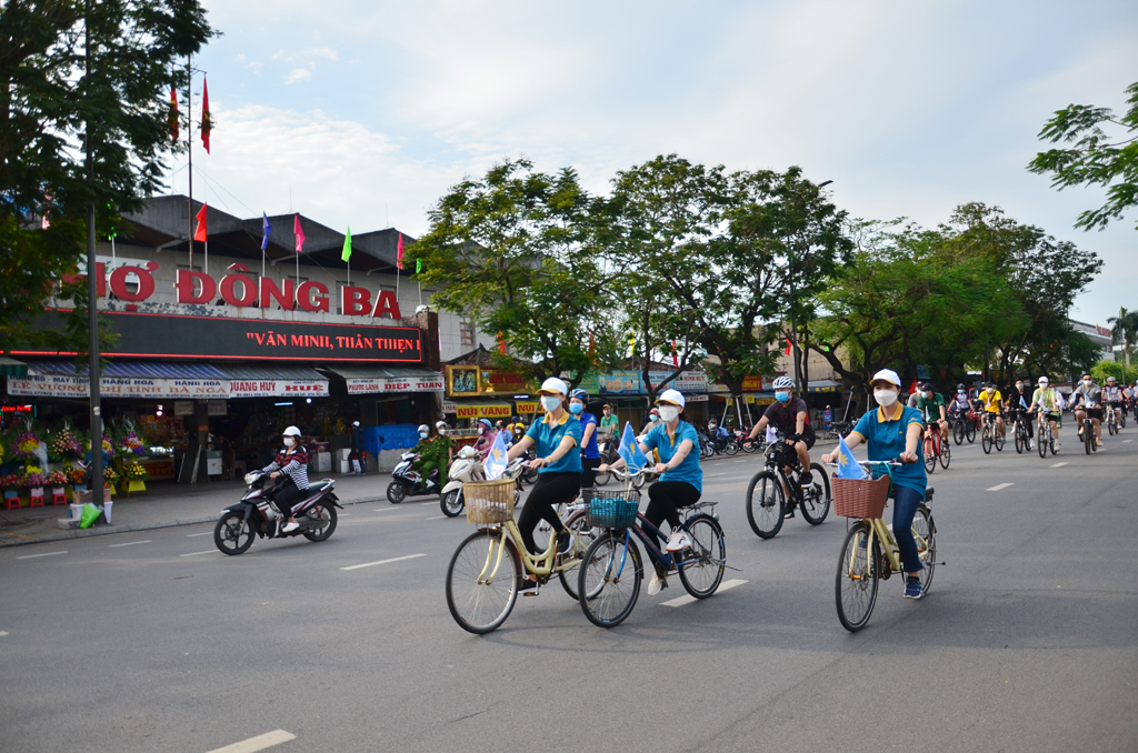 Sau nghi thức phát động chương trình, đoàn đạp xe theo lộ trình các tuyến đường Lê Duẩn-cửa Quảng Đức-đường 23/8-đường Đinh Tiên Hoàng-đường Trần Hưng Đạo-cầu Tràng Tiền-đường Lê Lợi-đường Bùi Thị Xuân-Cầu Dã Viên-về lại sân Nghinh Lương Đình.