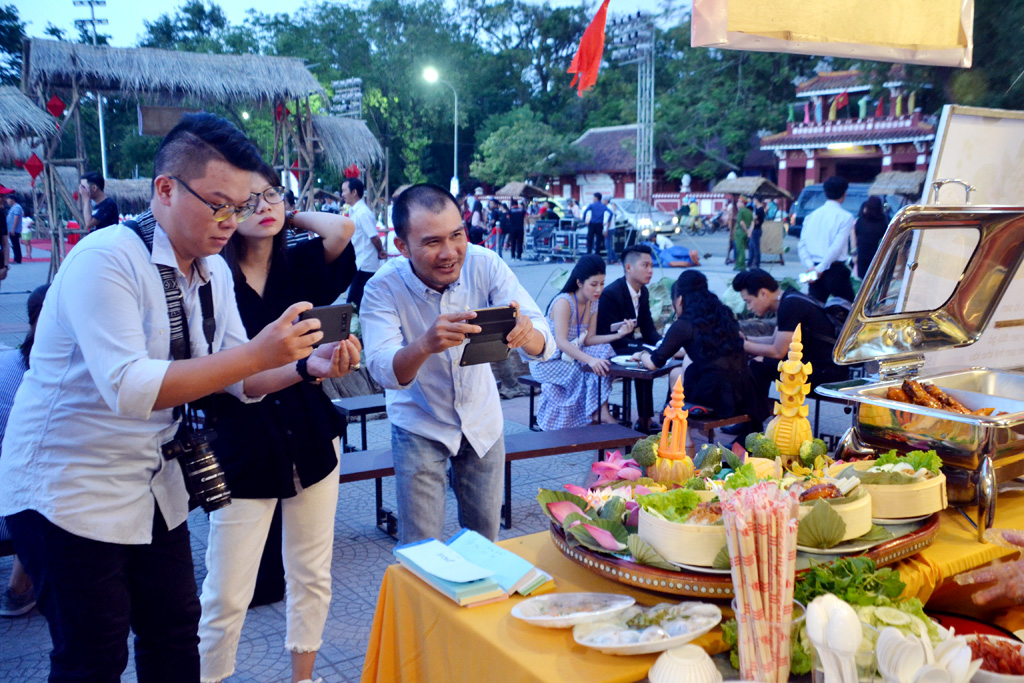 Trong đêm đầu tiên diễn ra lễ hội, khu vực ẩm thực và trưng bày các sản phẩm làng nghề gắn với sen thu hút đông đảo người đến tham quan và thưởng thức. Tại gian hàng ẩm thực, phong phú món ăn liên quan đến hạt sen, ngó sen, củ sen… được trưng bày và phục vụ công chúng. Đại diện gian hàng của Khách sạn Hương Giang cho biết, những món ăn chính phục vụ khách như, xôi mặn lá sen, cơm gà lá sen, cơm sườn lá sen, chè hạt sen… Ngoài ra, khá nhiều món ăn khác như bánh bèo, nậm, lọc, các món ăn nhanh… cũng được bổ sung thêm nhằm phục vụ nhu cầu đa dạng của công chúng.
