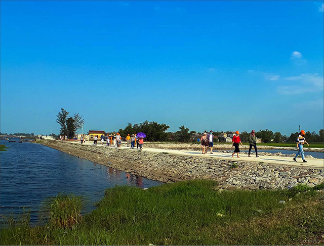 Du khách tham quan, trải nghiệm tại Ngư Mỹ Thạnh. Ảnh: Nguyễn Hưng