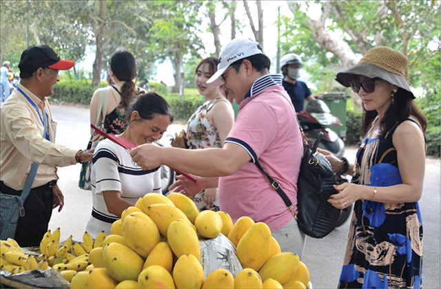Du khách mua trái cây ở khu vực chùa Thiên Mụ (nơi từng xảy ra vụ việc bán 2kg măng cụt cho khách với giá 1 triệu đồng)