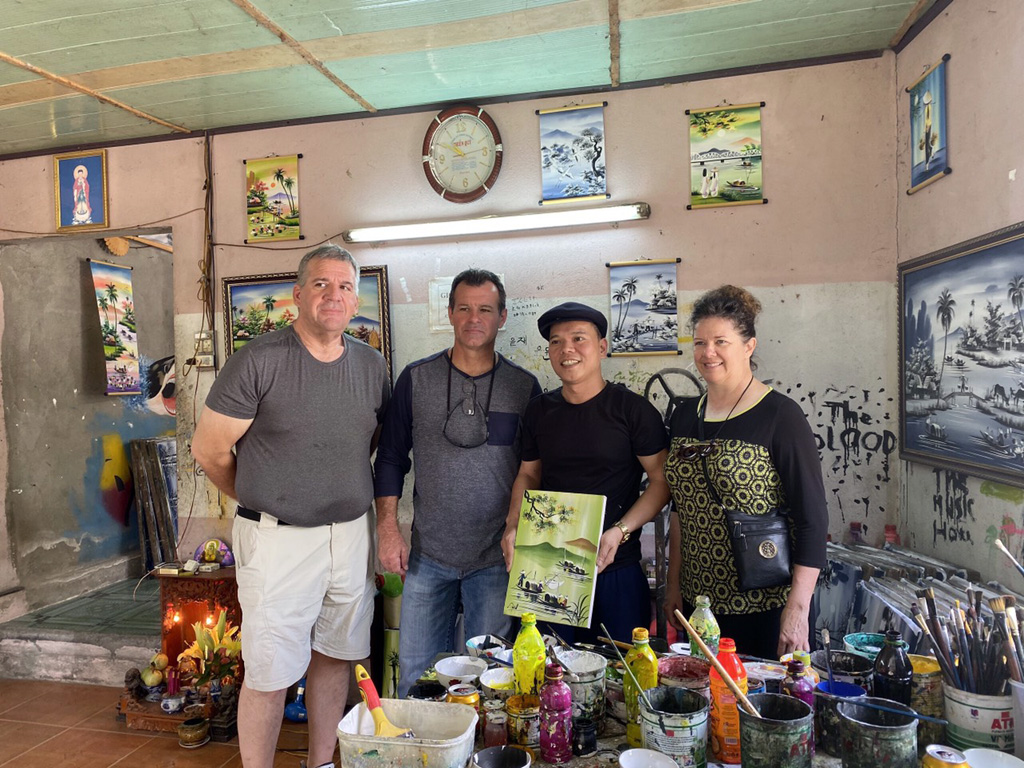 Được họa sĩ Huế vẽ tặng các bức tranh về làng quê Việt Nam