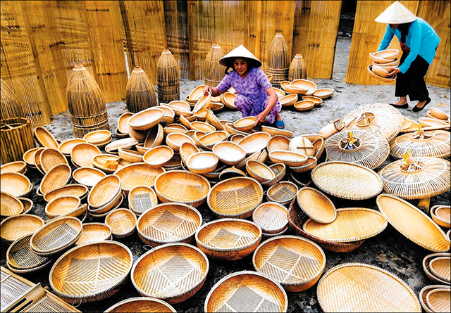 Làng nghề đan lát Bao La được du khách chú ý. Ảnh: Thanh Loan