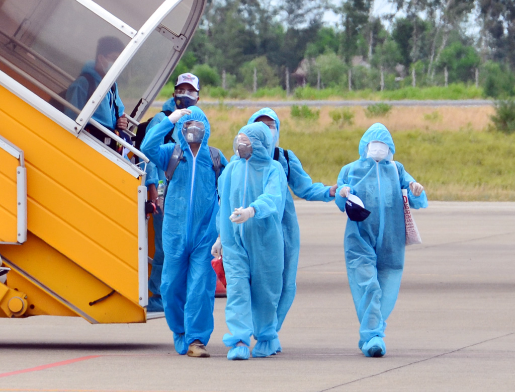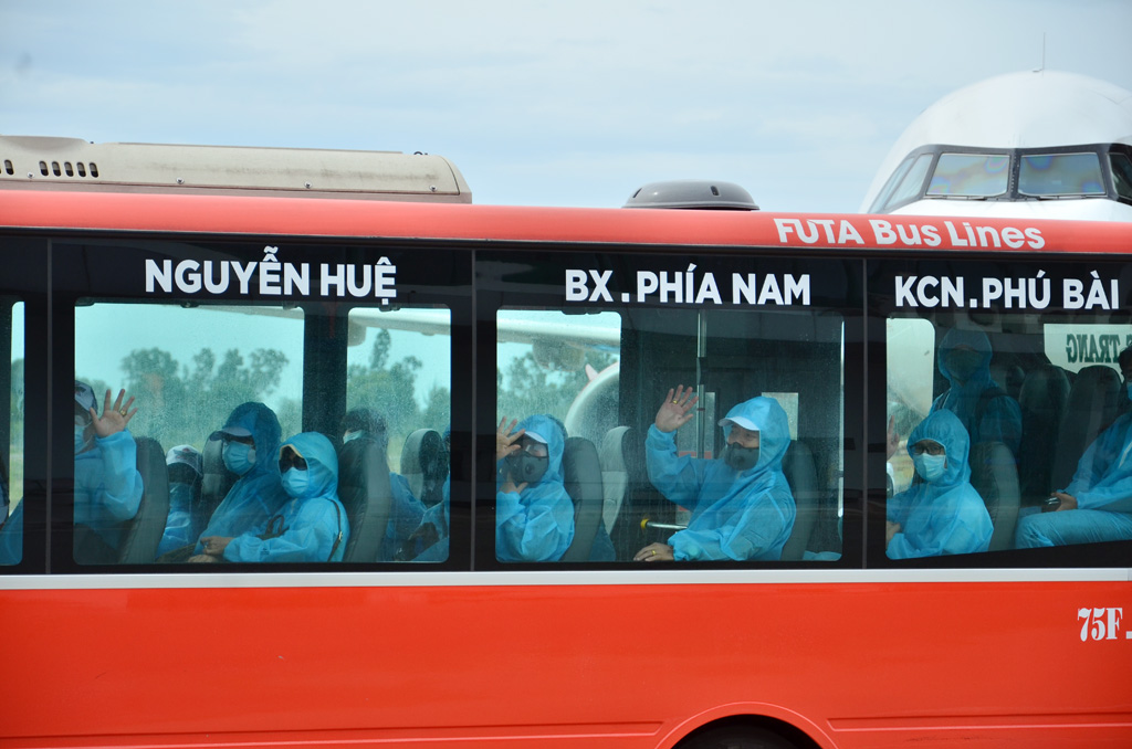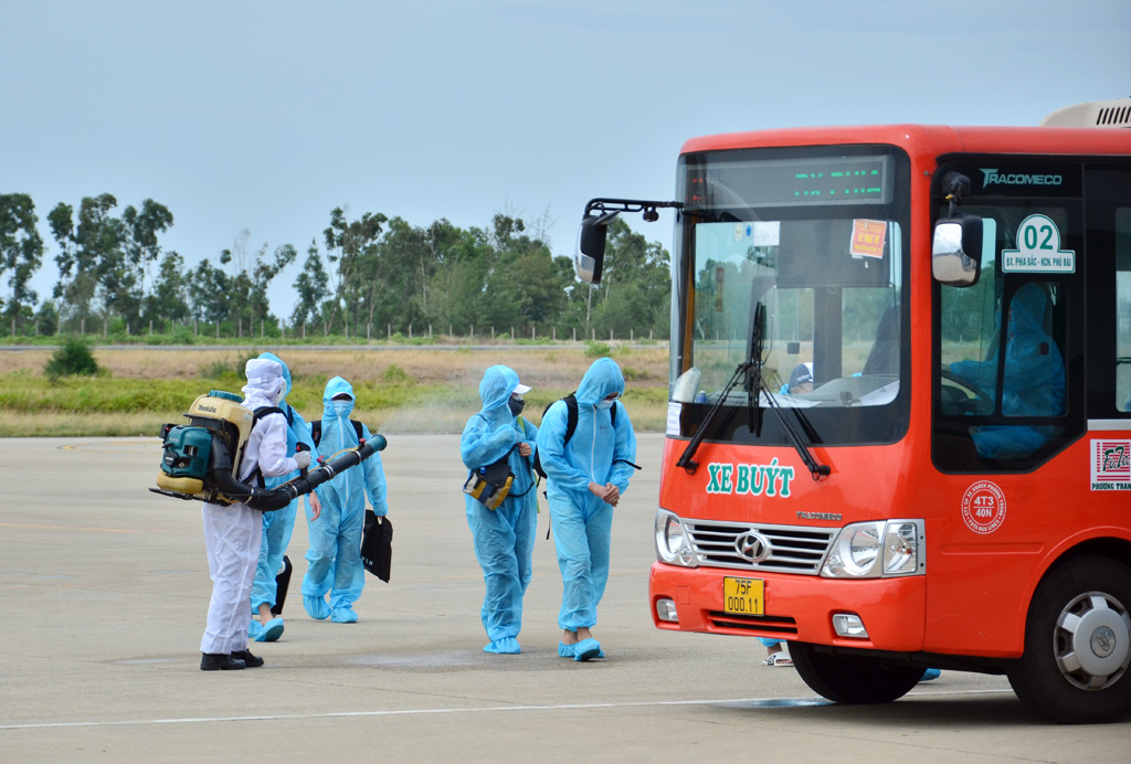 Sau khi máy bay hạ cánh xuống Cảng hàng không Quốc tế Phú Bài, các công dân được xịt khuẩn người, hành lý và di chuyển bằng xe buýt đến 2 cơ sở cách ly có thu phí là Khách sạn Century và Khách sạn nghỉ dưỡng Sun & Sea. Mỗi xe buýt chỉ chở tối đa 18 - 20 người, có vách ngăn giữa lái xe và khoang chở khách. Các xe đều phun được khử khuẩn trước khi đón khách và sau khi trả khách.