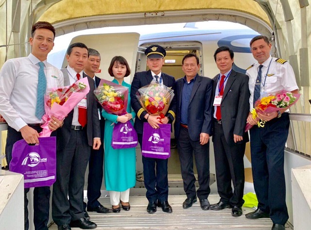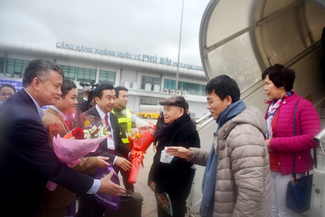 Đúng 9h 45, chuyến bay mang số hiệu VN1543 Hà Nội - Huế đưa 184 hành khách hạ cánh xuống Cảng Hàng không quốc tế Phú Bài. Ông Alex Ebtedaei cùng vợ là bà Nicolas Triballeau đến từ Pháp và ông Lê Hồng Thảo đến từ Hà Nội là 3 du khách đầu tiên đặt chân xuống sân bay. Các du khách đi cùng chuyến bay và các thành viên của tổ bay và tổ tiếp viên cũng được tặng quà lưu niệm và được thưởng thức chương trình biểu diễn Lân sư rồng truyền thống chào mừng. Riêng 3 hành khách đầu tiên còn được Vietnam Airlines tặng 3 cặp vé khứ hồi nội địa được sử dụng trong năm 2019.
