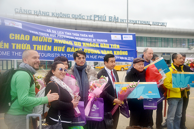 Chào đón năm mới 2019, đồng thời thể hiện tinh thần mến khách, thân thiện của vùng đất Cố đô đối với du khách, Sở Du lịch phối hợp với Cảng vụ Hàng không Miền Trung tại Huế, Cảng Hàng không Quốc tế Phú Bài và Văn phòng đại diện tại Thừa Thiên Huế của Tổng công ty Hàng không Việt Nam – Công ty Cổ phần (Vietnam Airlines) tổ chức đón những du khách đầu tiên đến Huế bằng đường hàng không.