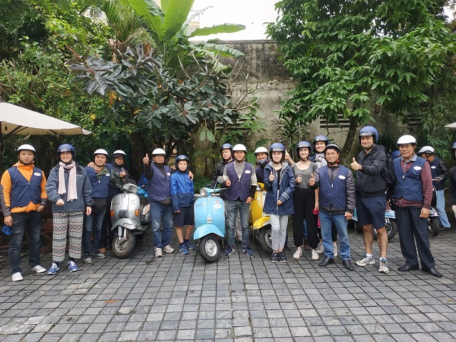 Du khách tham gia tour khám phá Huế bằng Vespa cổ trong ngày 1/1/2019