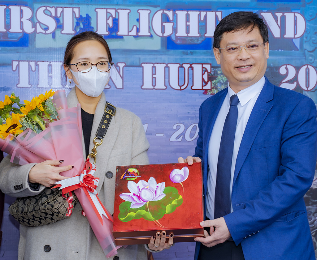 Đúng 09h40, 185 hành khách trên chuyến bay VN1543 Hà Nội – Huế đã đặt chân xuống Cảng hàng không quốc tế Phú Bài. Các hành khách cùng cơ trưởng và tiếp viên trưởng của chuyến bay được lãnh đạo UBND tỉnh, Sở Du lịch cùng các đơn vị đón tiếp, trao hoa và tặng quà lưu niệm chúc mừng năm mới.