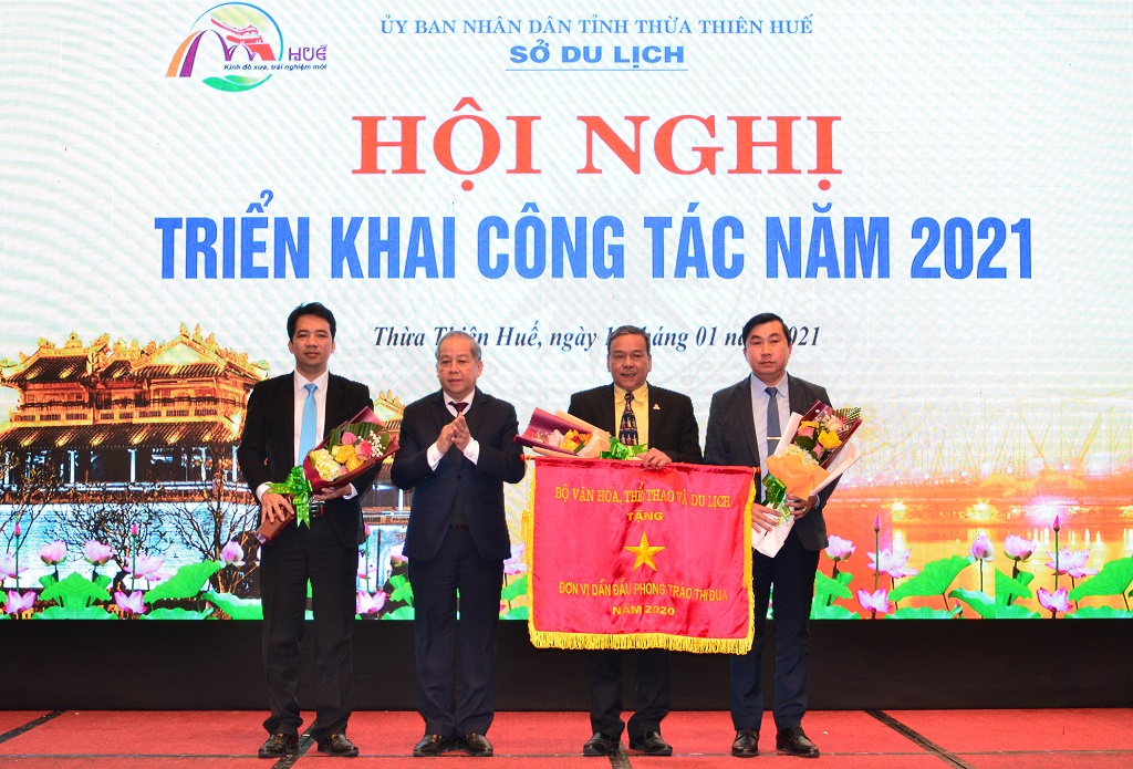 Tại hội nghị, Chủ tịch UBND tỉnh Phan Ngọc Thọ thừa ủy quyền Bộ Văn hóa, Thể thao và Du lịch tặng cờ đơn vị dẫn đầu phong trào thi đua năm 2020 cho Sở Du lịch.