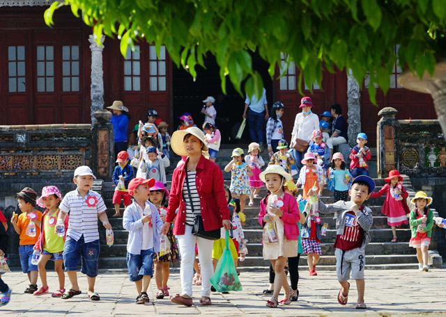 Nhiều em thiếu nhi lần đầu được vào Đại Nội